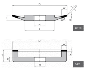 E Thickness at bore K Inside recess diameter J Hub diameter